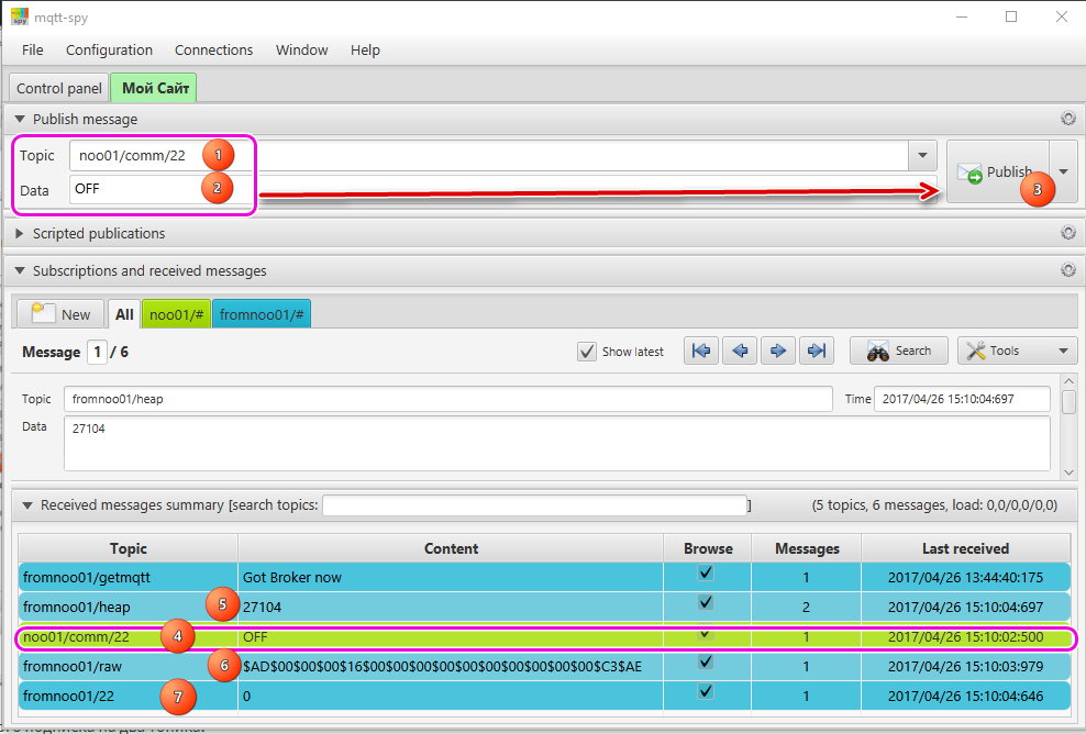 Полагаю, это все об устройстве. Я ничего не сказал о том, что приходит от устройства в ответ на команды и как выглядит информация от датчиков. MqttSpy в помощь. Привязали — и смотрим: