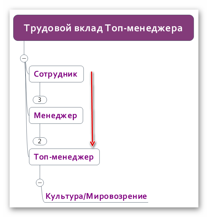 Топ-менеджер (он же и сотрудник, не так ли?) берет от обычного сотрудника три составляющие успеха, от менеджера добавляет еще две, и, наконец, топ-успех определяется еще всего одной, шестой составляющей — культуры/мировоззрения как совокупности взглядов и убеждений.