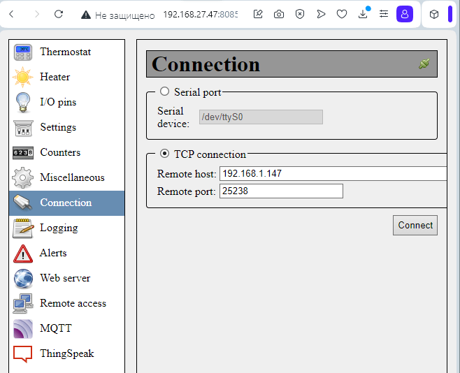 И TCP соединение, к которому можно (пытаться) логиниться Home Assistant: